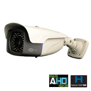 Best long range radiant infrared coverage for the price. This premium quality outdoor bullet camera provides users with 720P AHD output or 1200TVL Analog output (OSD Selectable). The built-in infrared array provides exceptionally even and consistent long-distance coverage. The varifocal lens can be adjusted quickly thanks to a weatherproof Installer Port that also conceals an auxiliary video connector for use during installation and the mini-joystick for adjusting the on-screen display (OSD) menu.